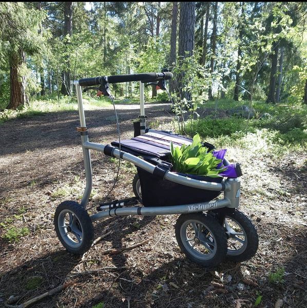 長年愛用している歩行器に加え、妻のウォーカー14erも愛用しています。ウォーカー14erの安定した構造と大きな車輪は、歩行感覚が全く異なり、新たな安心感を与えてくれます。「普通の歩行器」では、石畳の凹凸や草原の起伏の多い地形を歩くのは困難です。今では、体重が120kg弱の私でも、歩行器に座りながら近くの自然保護区に定期的に足を運ぶことができ、自然を満喫しています。妻は毎日、犬を連れて森の小道を散歩しても転倒することなく歩けています。