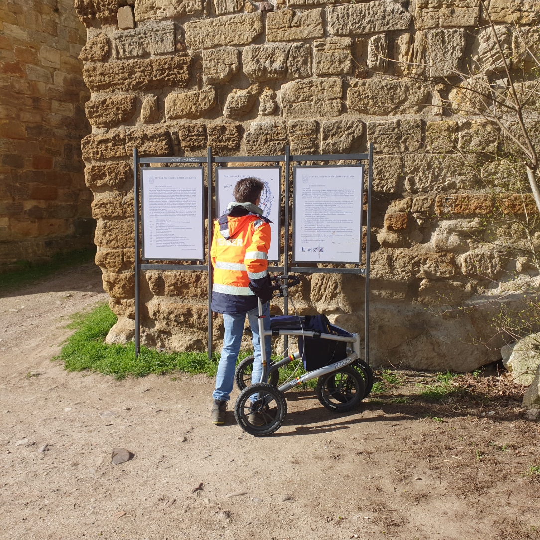 夫は2005年にパーキンソン病と診断されましたが、症状が進行するにつれて、外出して歩くための運動能力と自信が低下していきました。スキーポールのような杖を使っていましたが、数年前まではうまく機能していたものの、今では十分な支えと安定性が得られなくなっています。また、座る必要も増えました。私たちが田舎で楽しんでいる散歩道には座る場所がほとんどなく、パニック発作とすくみ足(パーキンソン病)の悪化という悪循環に陥っていました。