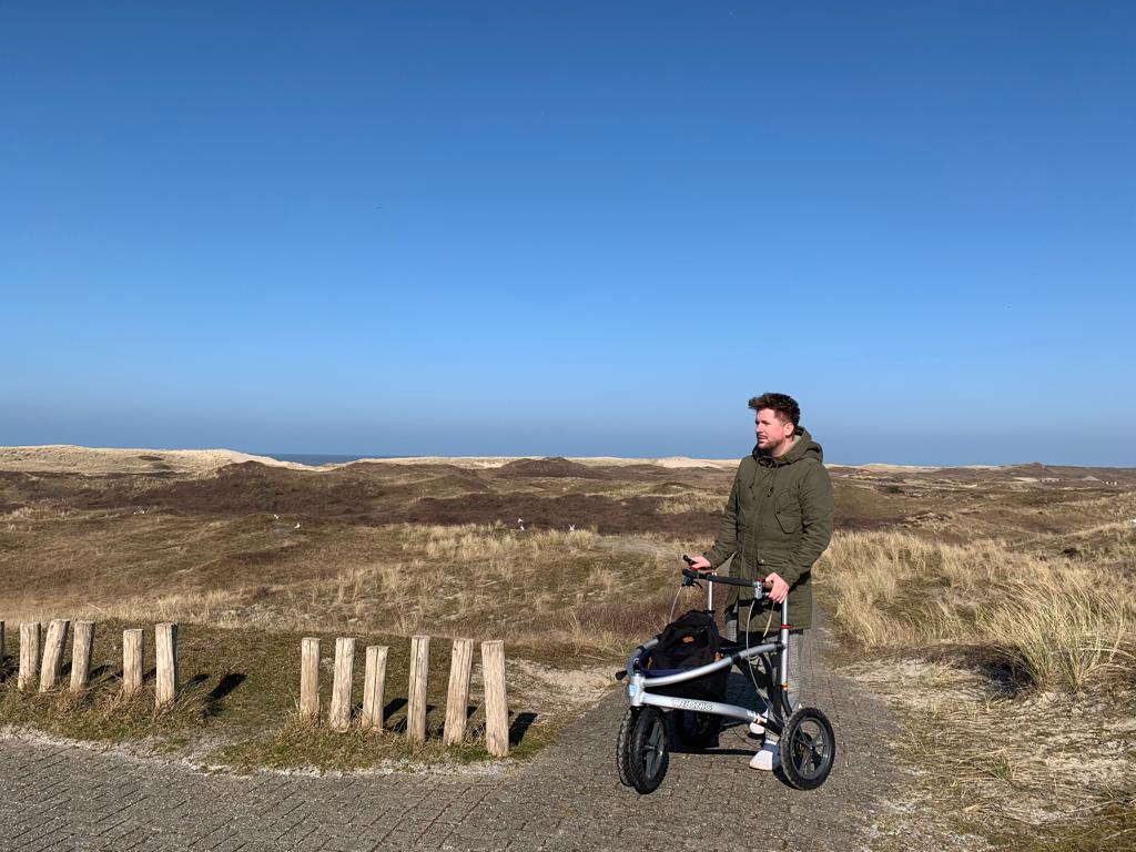 多発性硬化症(MS)で様々な面で制限を受けているので、ちょっとした障害物で引っかかってしまう普通の歩行器と格闘することなく、芝生や凸凹した地面を安全に歩けるようになったのは嬉しいです。
