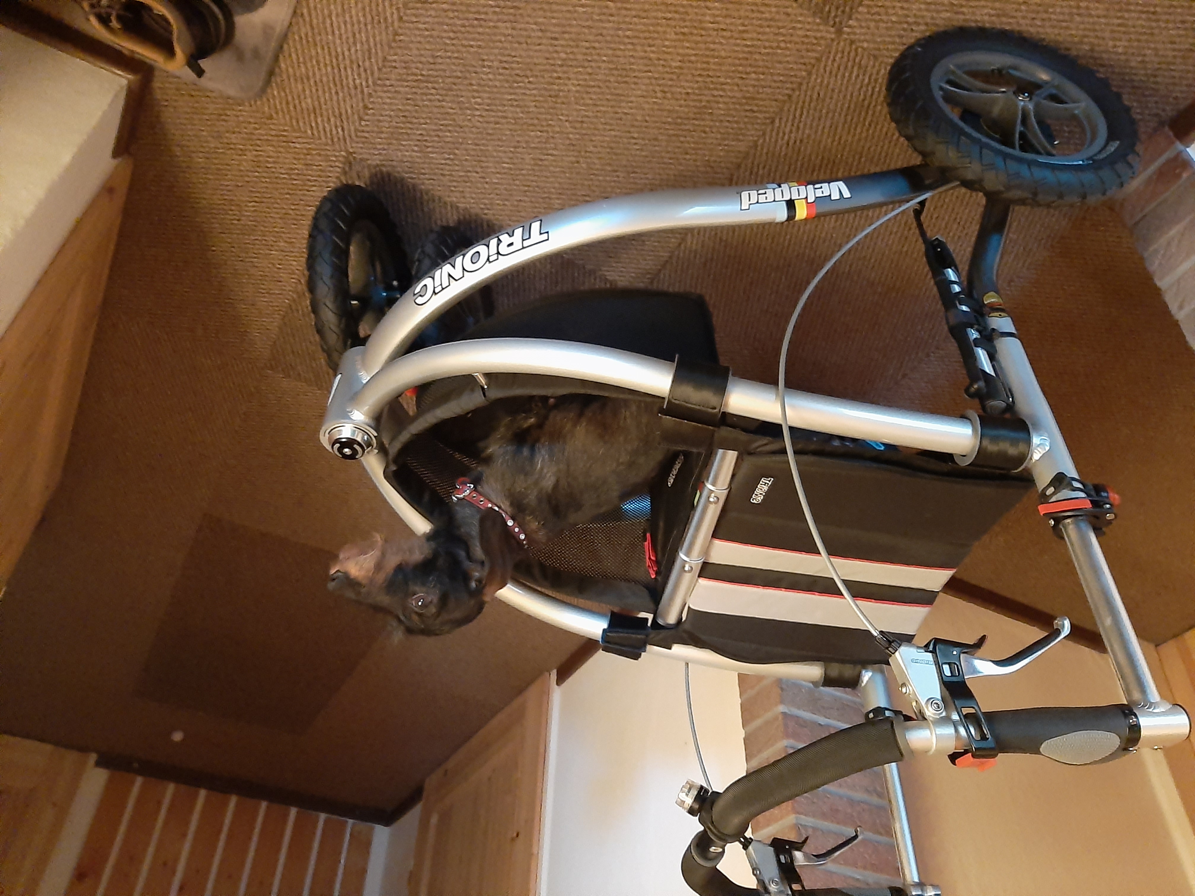 この歩行器はバスのタラップに収まり、折りたたみも簡単です(先にブレーキをかけます)。愛犬も乗るのが大好きですし、支えられて安定感があるので私も使っています。好意的なコメントもたくさんいただきました(中には冷ややかな視線も。一体どこからそんな風に思われたのでしょう?)。このシートは素晴らしいです。もうどのバス停(ベンチがある停留所)を利用するか悩む必要がなくなり、自分にとって一番便利な停留所を利用できるようになりました。