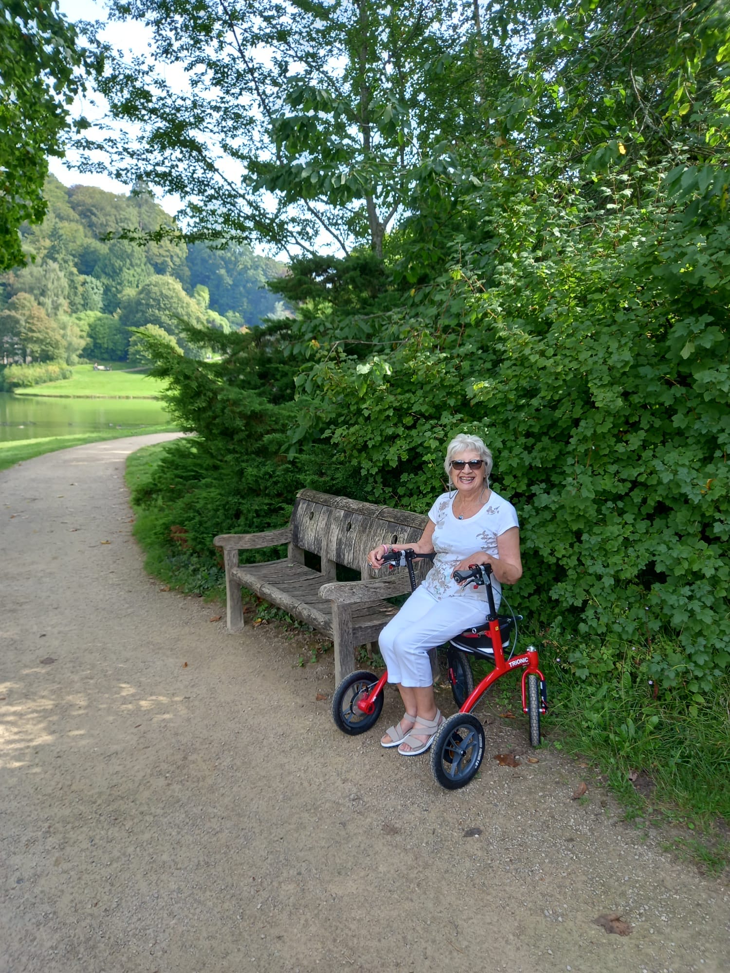 この歩行器はまさに期待通りのものでした。空気注入式タイヤのおかげで、荒れた不整地でも楽に歩けます。肩関節炎の私でも、この歩行器を使えばほとんど痛みを感じずに歩けます。私たちが行く先々で、他の高齢者の歩行器利用者から注目を集めています。英国でもっと広く宣伝する価値があるかもしれません。ナショナル・トラストのボランティアの方が、ナショナル・トラストが各施設にこの歩行器を設置して観光客に利用してもらうよう勧めたいとおっしゃっていました。…