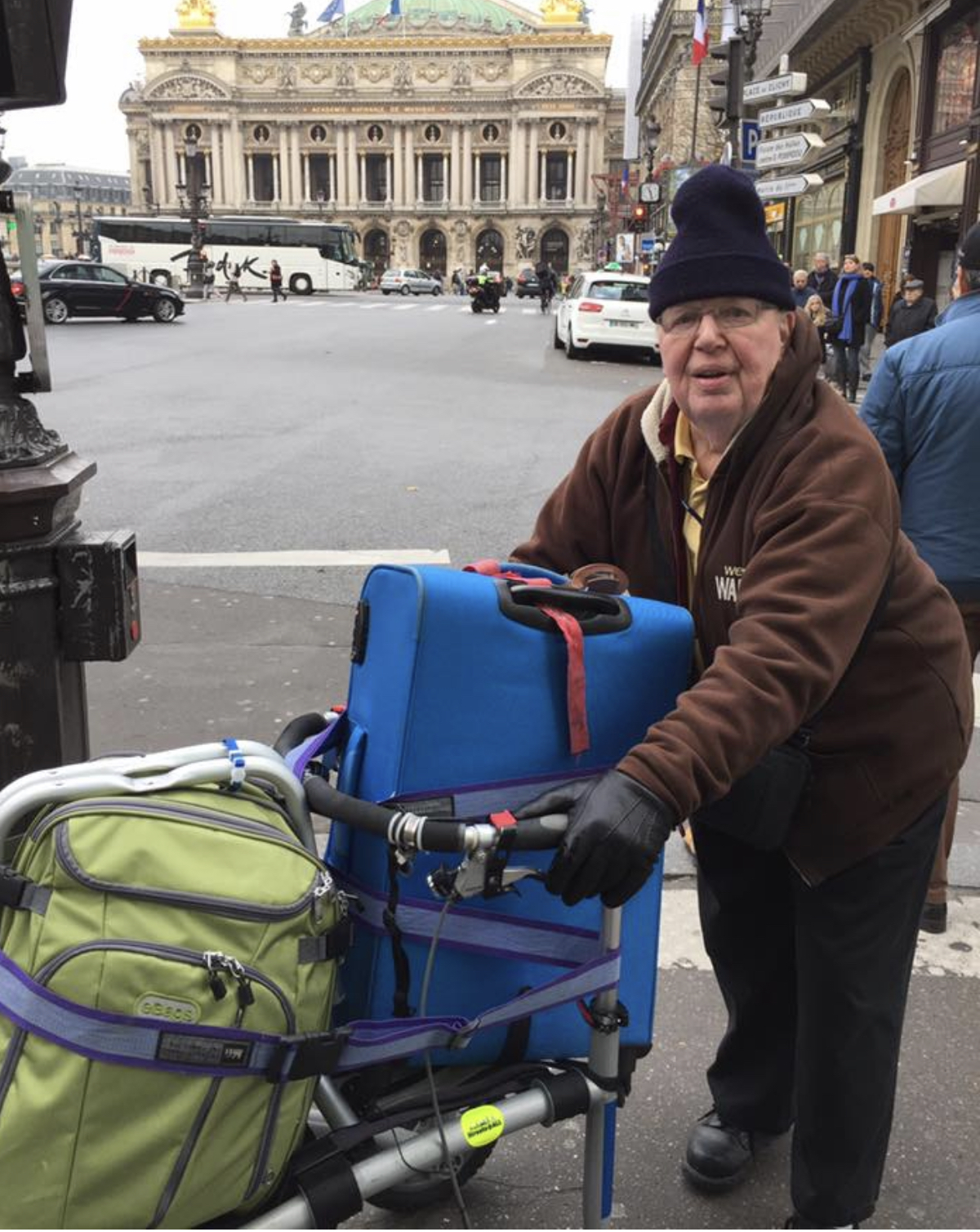 スライドシートを取り外して、取り外し可能なショッピングバスケットやカメラ用バックを収納できるスペースを確保しました。杖ホルダーはカメラ三脚の持ち運びにとても便利です。